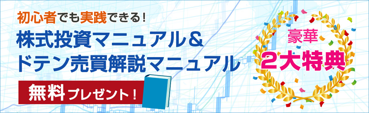 第1回動画講義の後には、「株式投資マニュアル&ドテン売買開設マニュアル」をプレゼントしますので、最後までご覧ください。